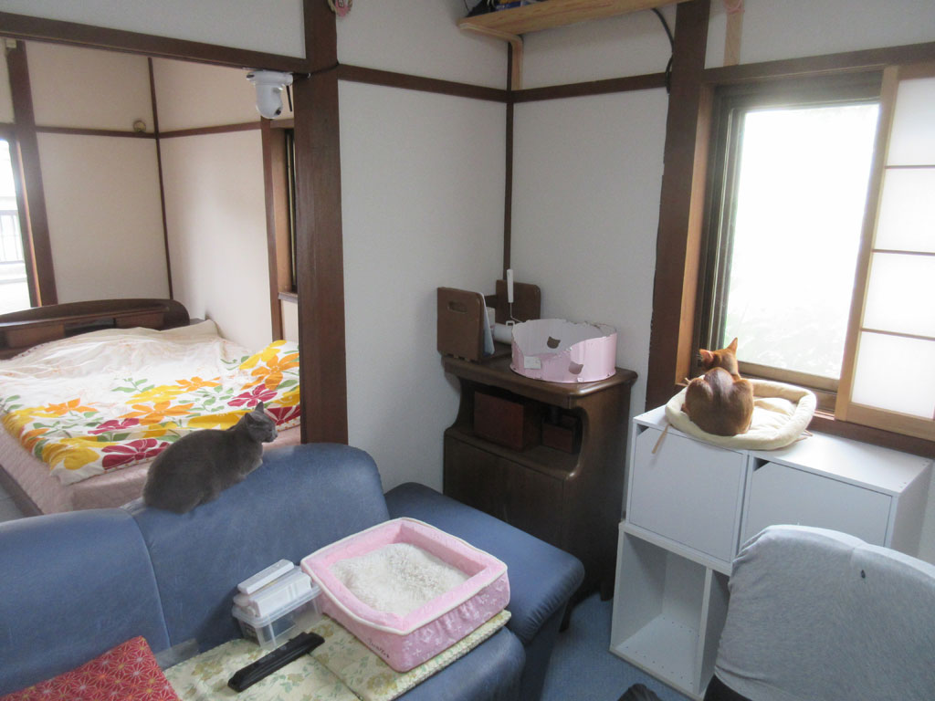 これ、今朝の我が家の猫たちの様子…、今日の神戸も曇よりとした天気で、そしてめちゃくちゃ蒸し暑くて、我が家の室内は、霧が立ち込めたかの様な、朝もやの中で猫たちが佇んでいるかの様な、そんな、ちょっと幻想的な朝の一場面だったのです。