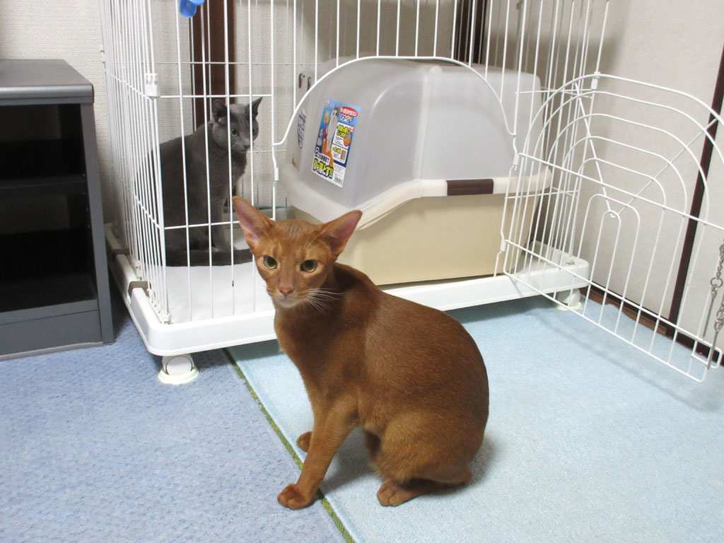 そして、アビのすけがトイレから出て来て、待ち構えるロシ子を上手にすり抜けて来ましたよ。