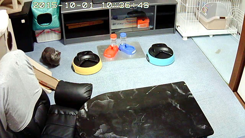 そして、ロシ子の方に視線を向けると、ロシ子、珍しく、Webカメラが動いた事に反応してくれて、こっちを見てくれました。