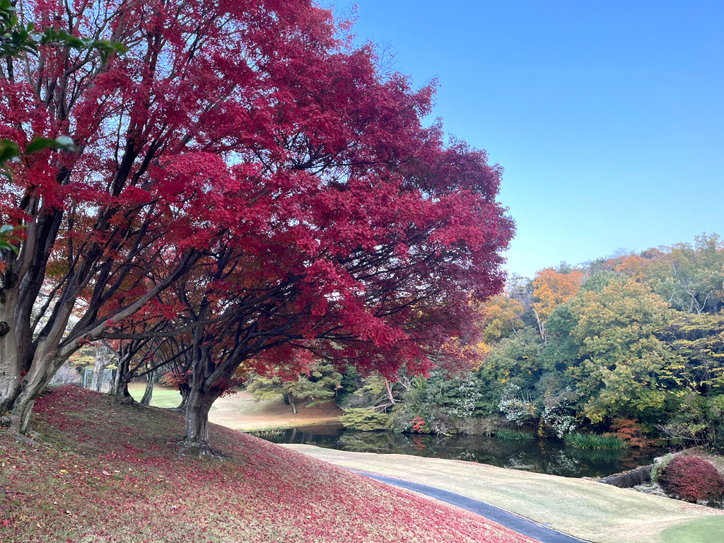 まず、これは、先月の末になりますが、私がよく行くゴルフ場の散り始めの紅葉。