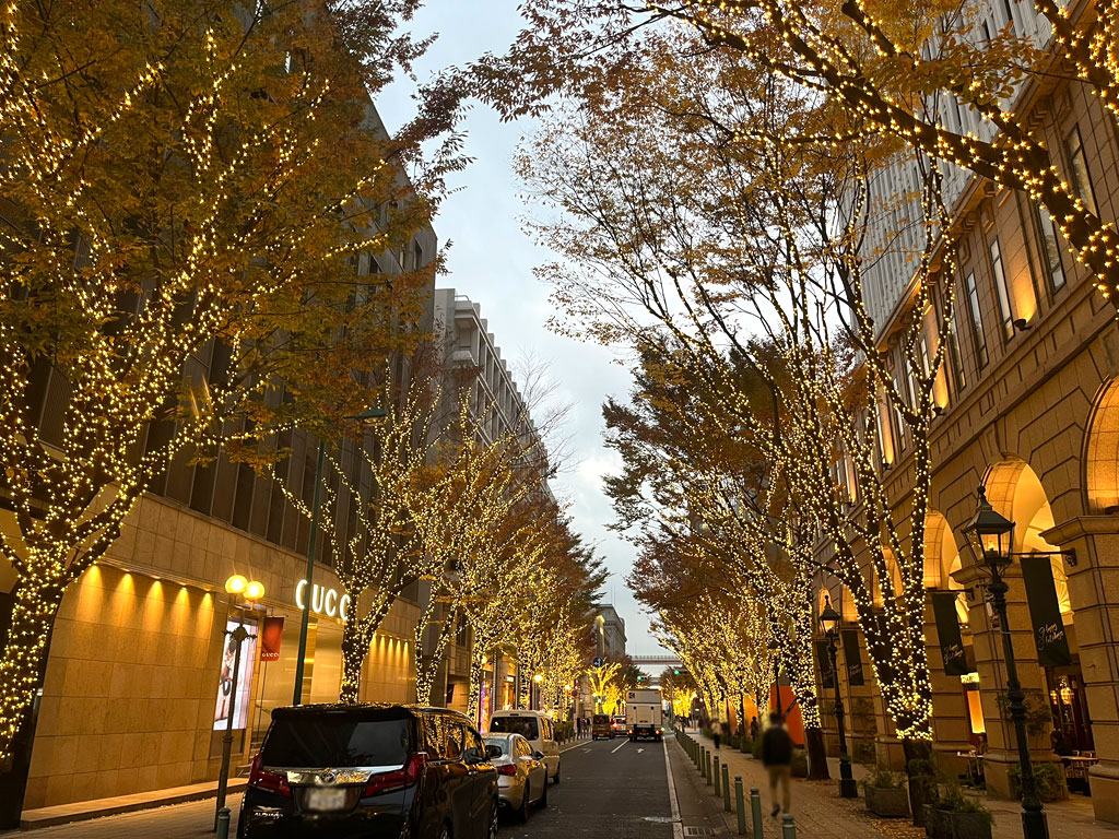そして、これも、先月の11月末の、神戸の旧居留地、大丸の横の道路のイルミネーション。