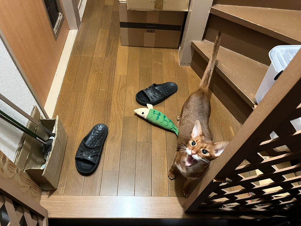 今回は、明日にペットシッターさんが来てくれるから、たくさん遊んでもらうんだよ。