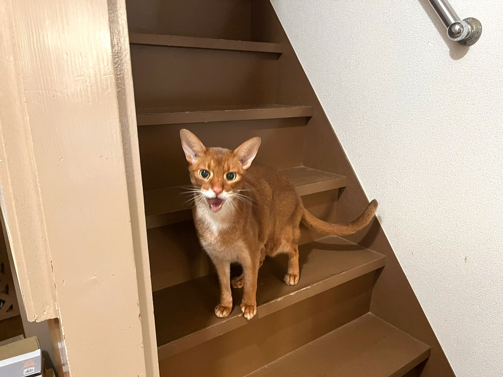 そして、16時前に自宅に戻ると、やはり、叫んで、アビのすけくんが私の帰りを歓待してくれました。