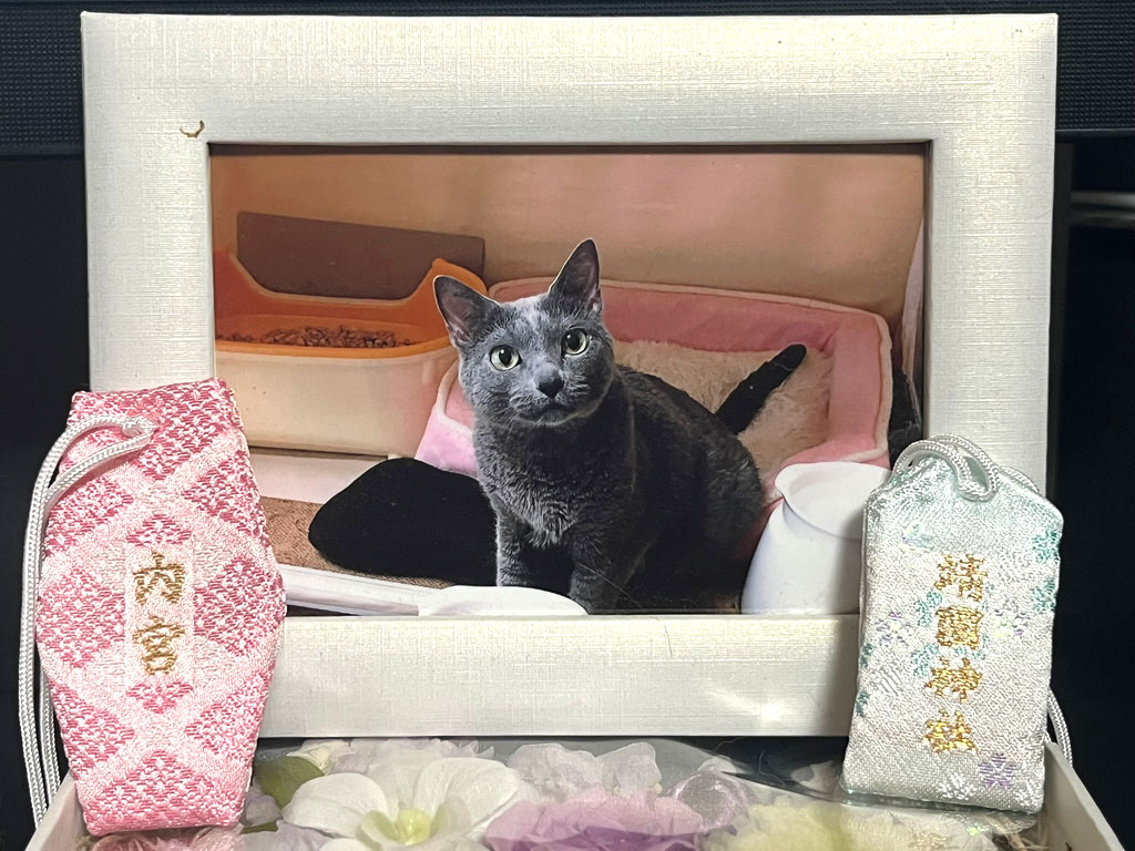 この度は、靖国神社でお守りを買って、冒頭の写真の通り、ロシ子ちゃんにお供えしました。