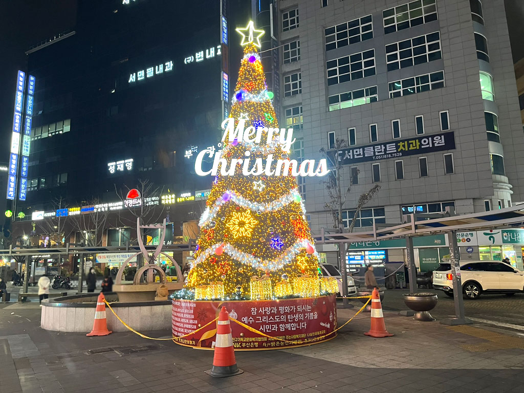 いつも、釜山の西面という所のホテルに泊まるのですが、西面もクリスマス一色。
