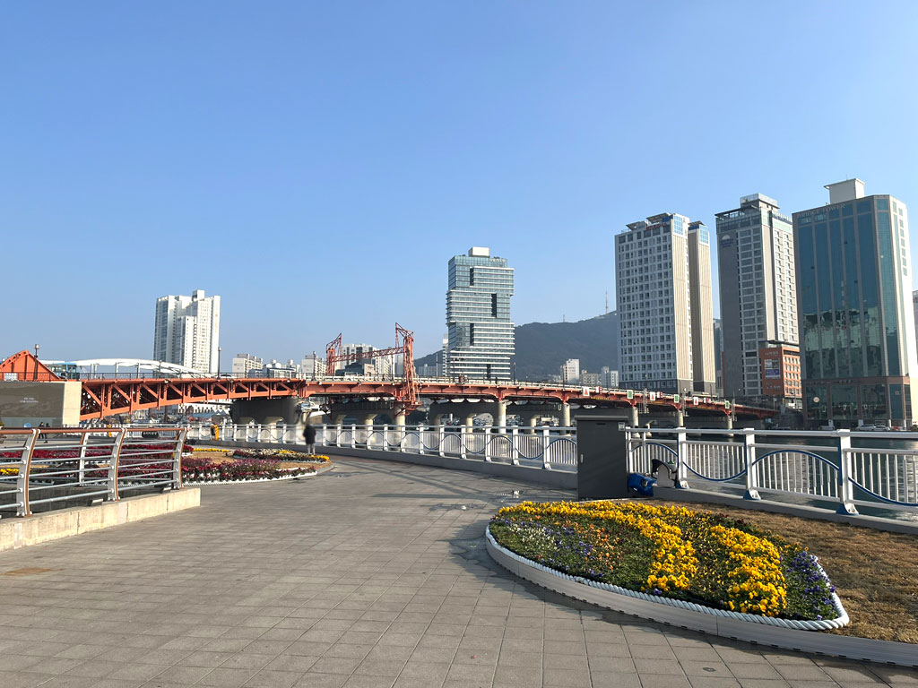 「影島大橋」は、釜山にある有名な跳開橋(船が通る際に橋の一部が跳ね上がる仕組みの橋)で、今は、週に1回、毎週土曜の14時に、15分間だけ跳開されるので、いつか、見てみたいと思っています。