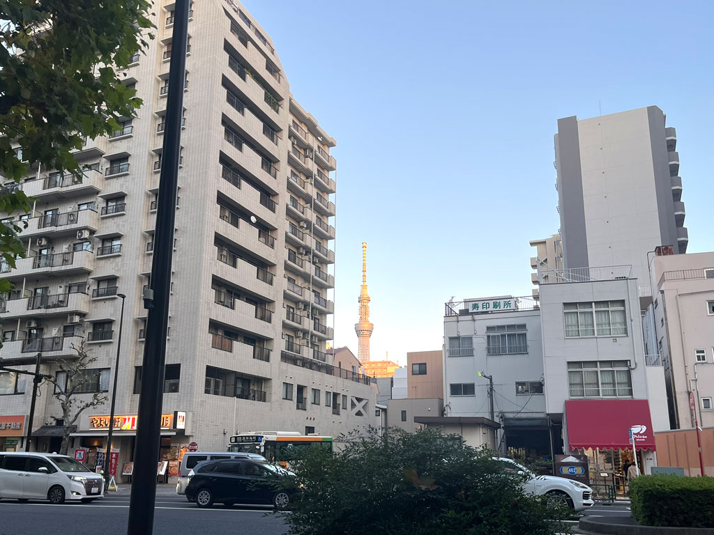 マンションの間から「東京スカイツリー」が見えて、なんか、東京って感じで、こんな大都会で幼少期を過ごしたんだと、懐かしく思いました。