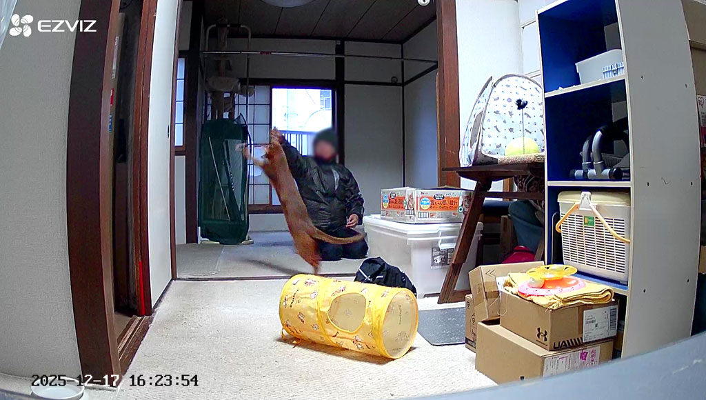その後、一旦、ホテルに戻り、ペットシッターさんが来て下さっている様子を、Webカメラで観察。