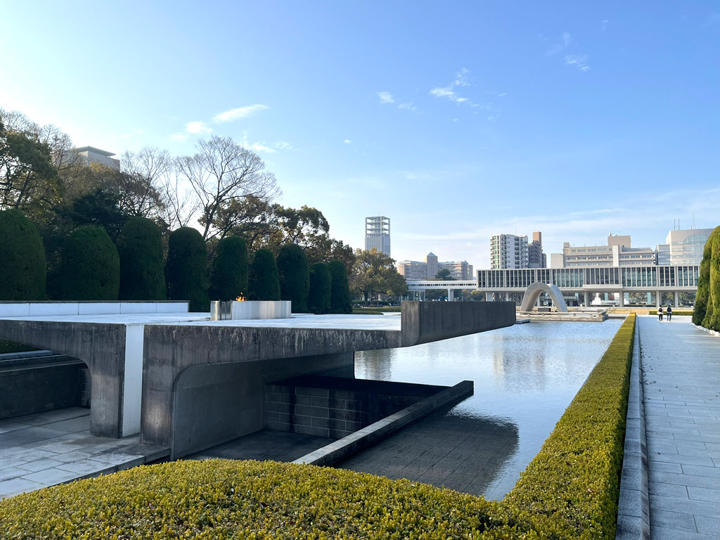 向こうには、「原爆ドーム」が見え、世界で唯一、原爆を落とされた日本の、平和を願う象徴的な場所だと、気持ちが洗われました。