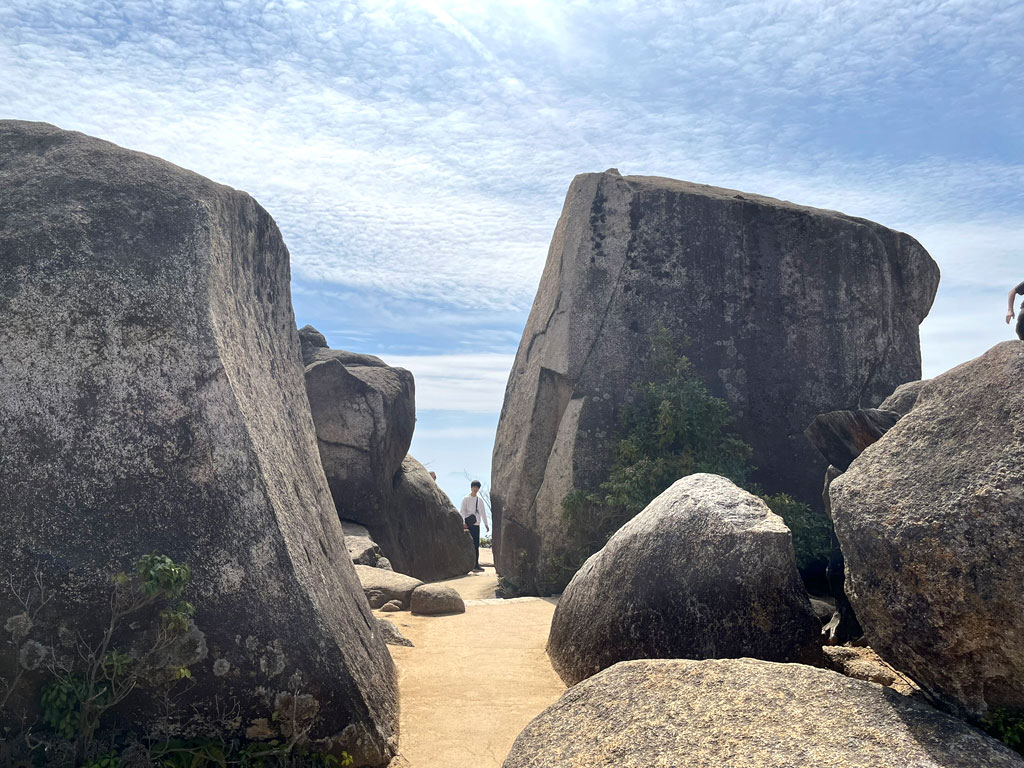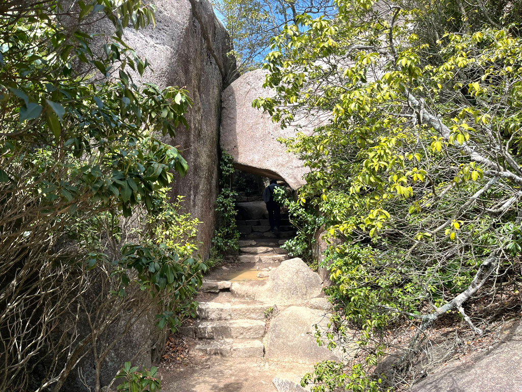 そして、汗をたらたらかきながら、外国人観光客を追い越し、追い越し、山頂まであと一息の、巨岩のトンネルの「くぐり岩」をくぐり。