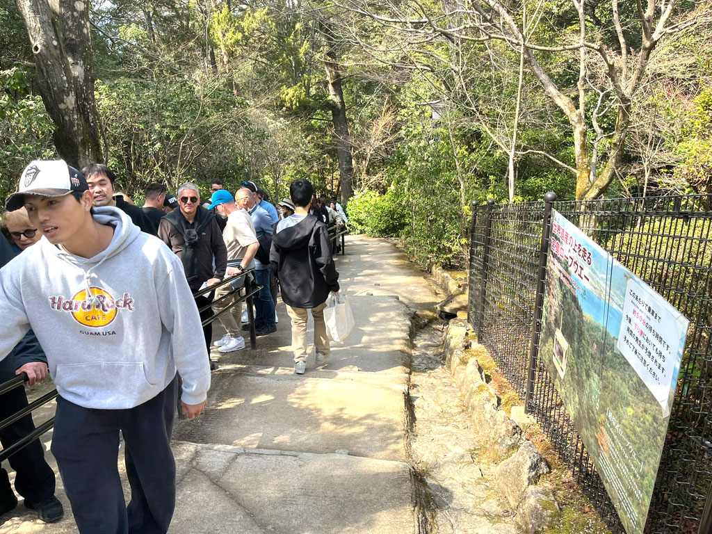 そして、ここから、弥山の山頂を目指したのですが、これがかなりの急坂で、おまけに、普通の人の足だと、30分ちょっと掛かるとのことで、でも、午後4時からの遅い昼ご飯のために、3時半には広島に戻らなければならず、急いで、汗たらたらで上り始め。