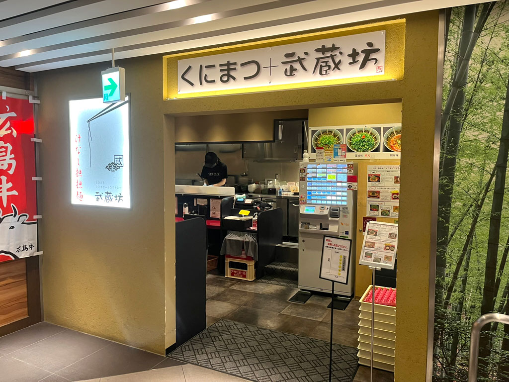 でも、折角、広島に来たのだから、少なくとも、ご当地グルメを食べておかねばと思い、担担麺はあまり好きではないのですが、ご当地グルメの「汁なし担担麺」を食べようと、広島駅直結、ekie1階の「くにまつ+武蔵坊」に行きました。