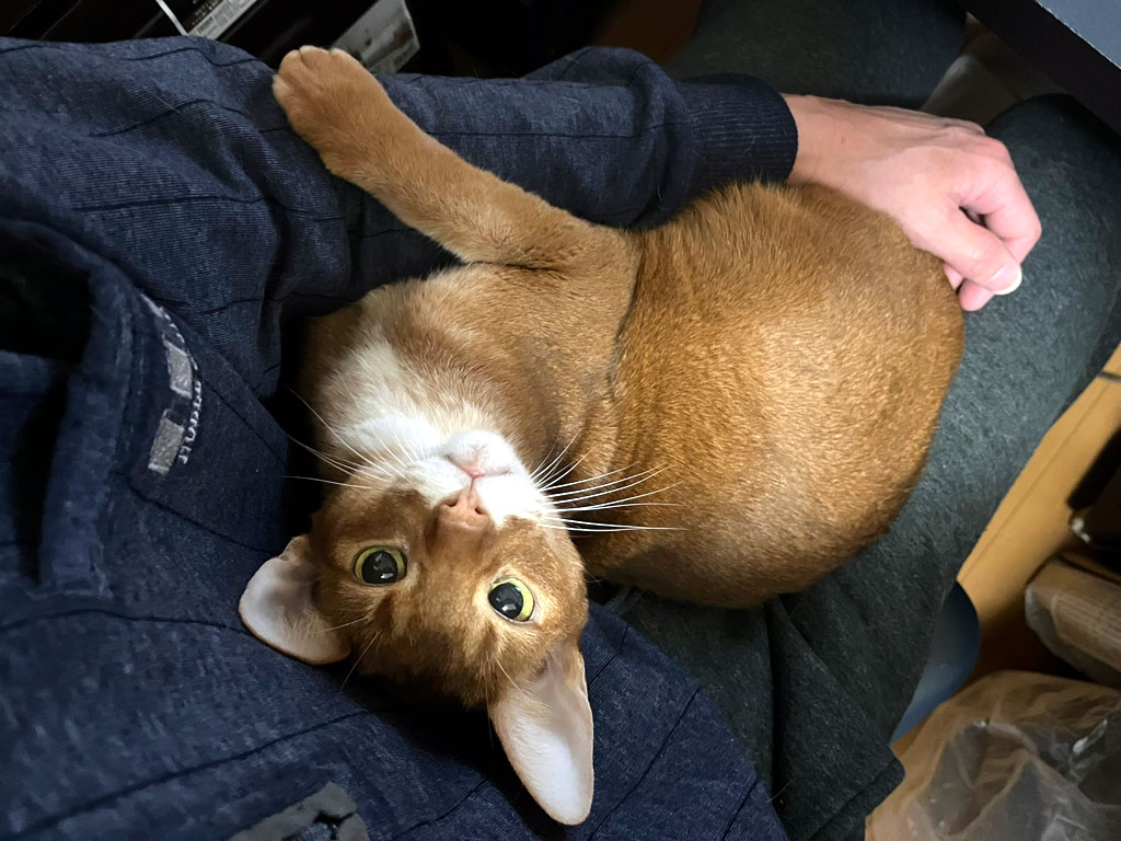 最近は、私の太ももに乗って来る率が増えて、昔のロシ子状態になっていて、本当にアビのすけが可愛いのです。