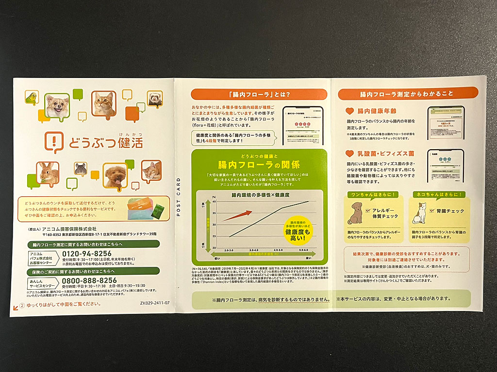 そうそう、そう言えば、アニコムのペット保険から、今年も「腸内フローラ」の検査のお知らせが来ました。
