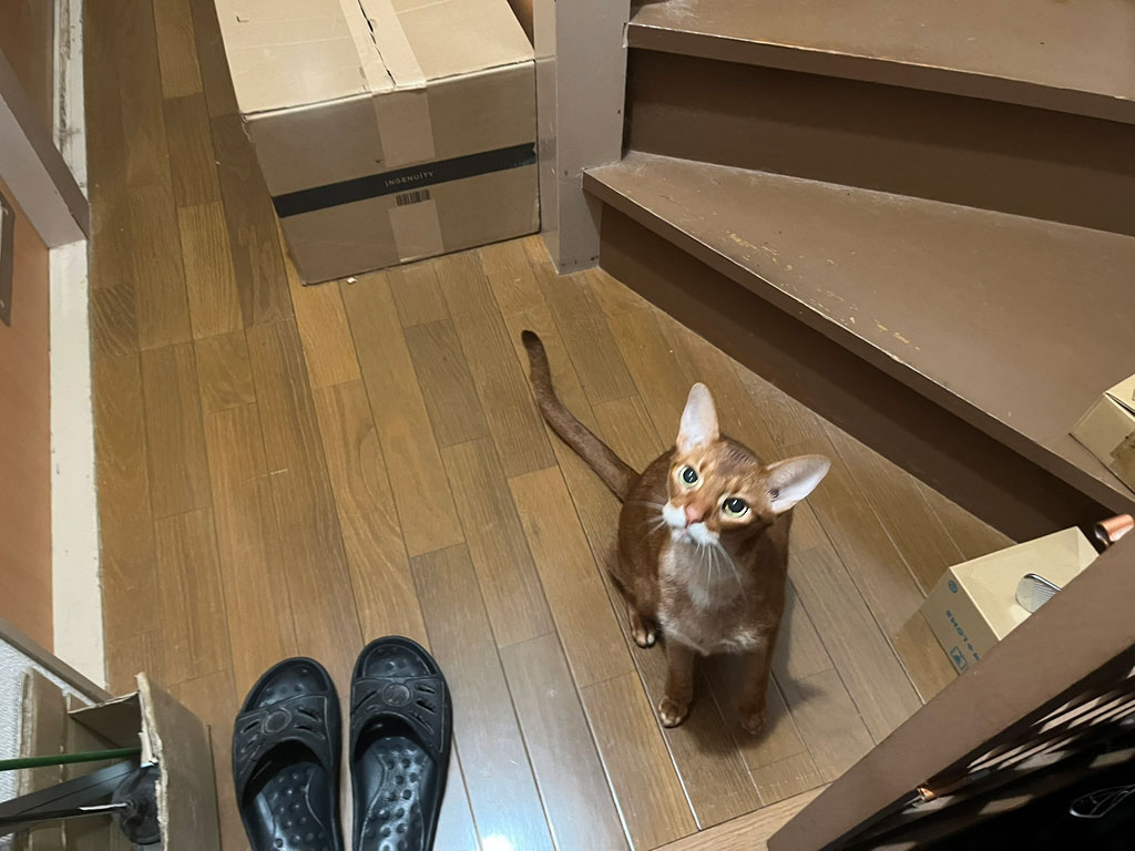 そして、朝5時40分過ぎに自宅に帰宅すると、アビのすけ、ご飯が欲しかったのか、おやつが欲しかったのかは分かりませんが、私のことを歓待してくれました。