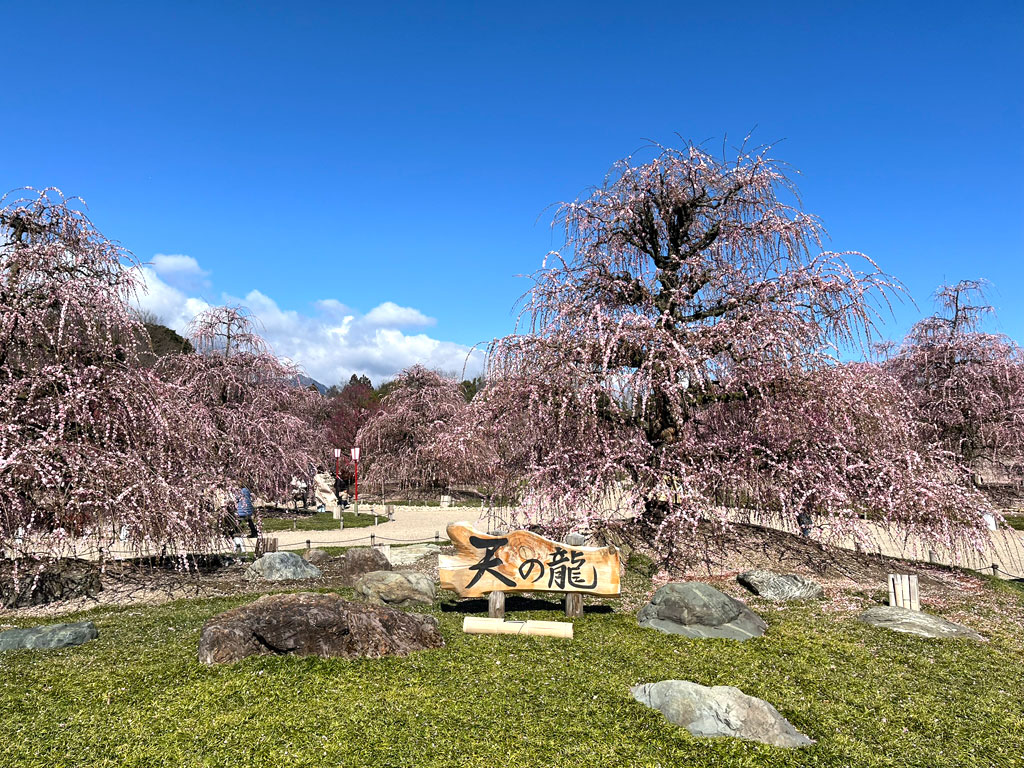 ここに、必見の、約300本の、華麗なしだれ梅があるようなのです。