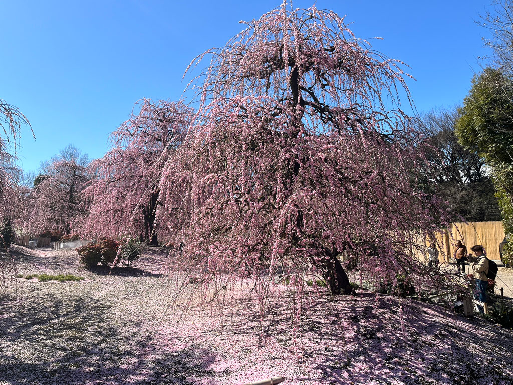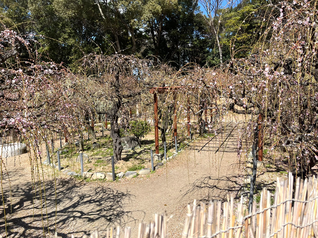 こりゃあ、ダメだと思い、満開の時期は、素晴らしい「枝垂れ梅」が見れるとのことでしたが、800円の入場料がもったいなく感じたので、有料エリアの「梅苑」には入りませんでした。