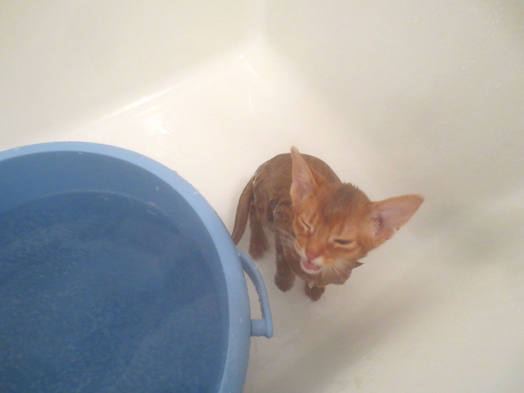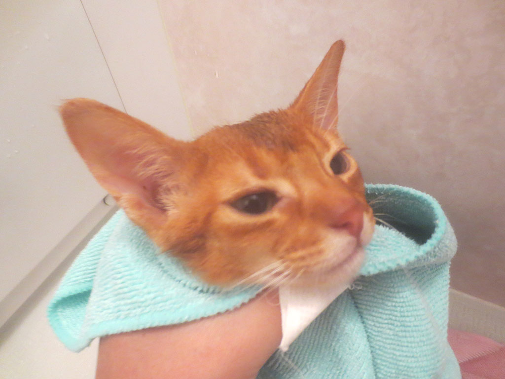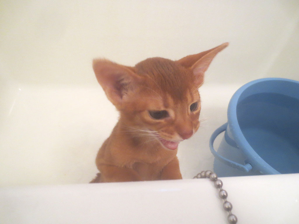 そこで、今日、アビシニアンのアビのすけに、我が家に来てから、初めてのシャンプーをしてやりました。
