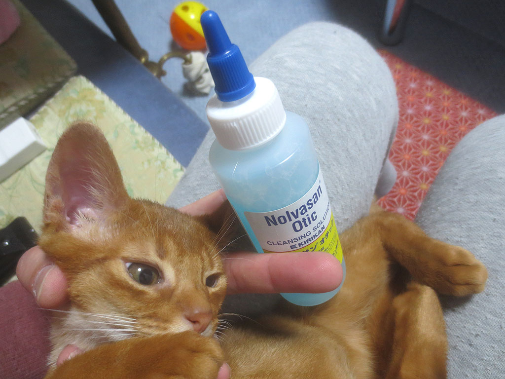 普段は、なかなか、お尻の重い私なのですが、ここまでアビのすけの耳の中が汚いと、さすがの私も、すかさず、ノルバサン オチックを冷蔵庫から出して来ましたよ。