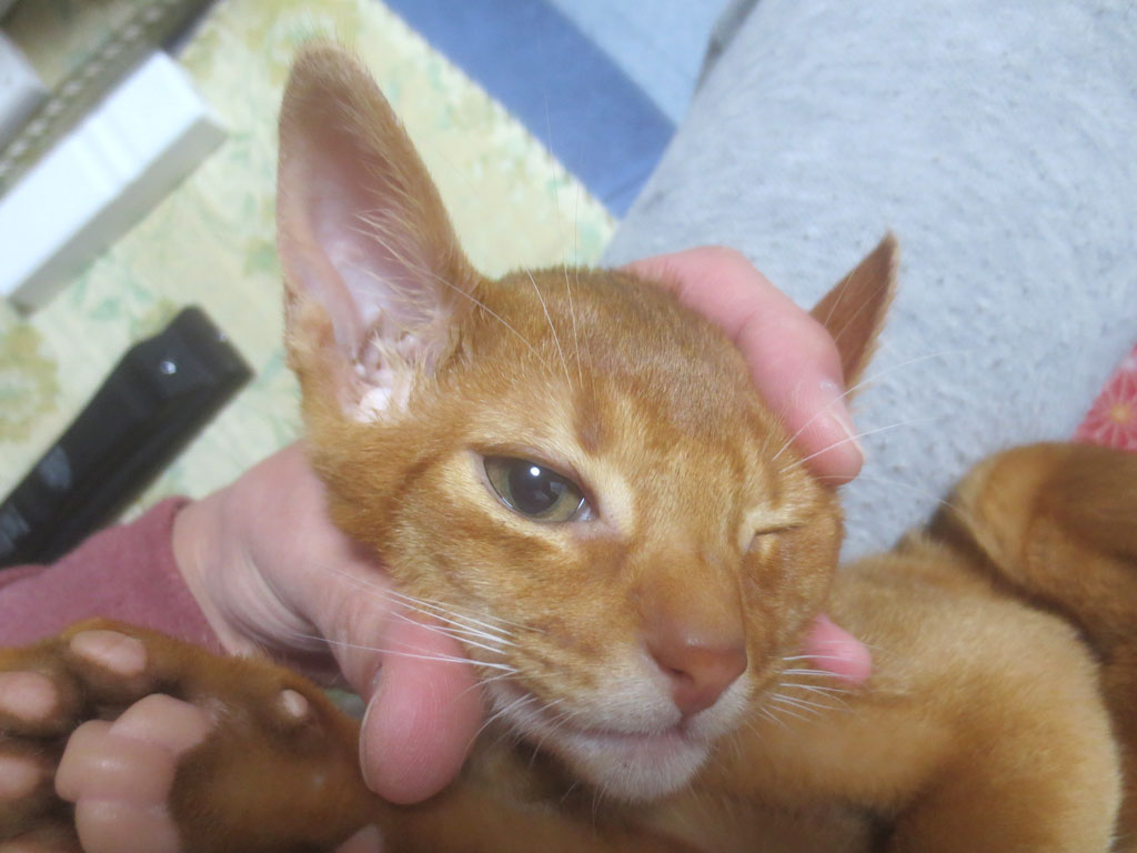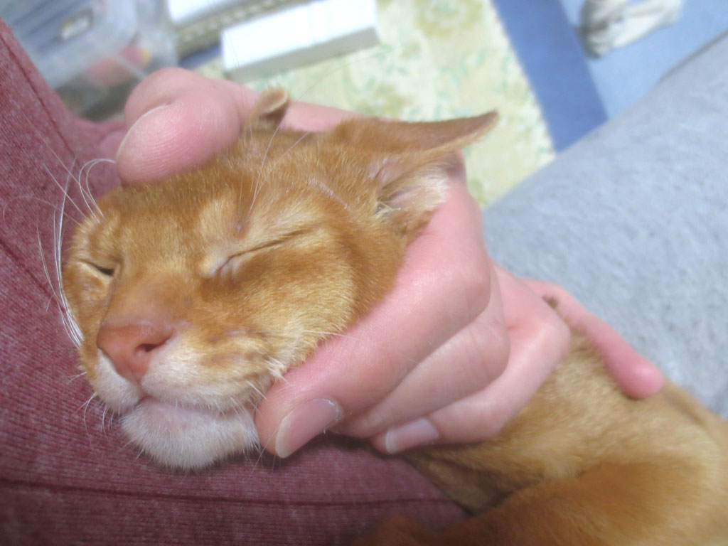 アビシニアンのアビのすけ、初めての爪切りです。