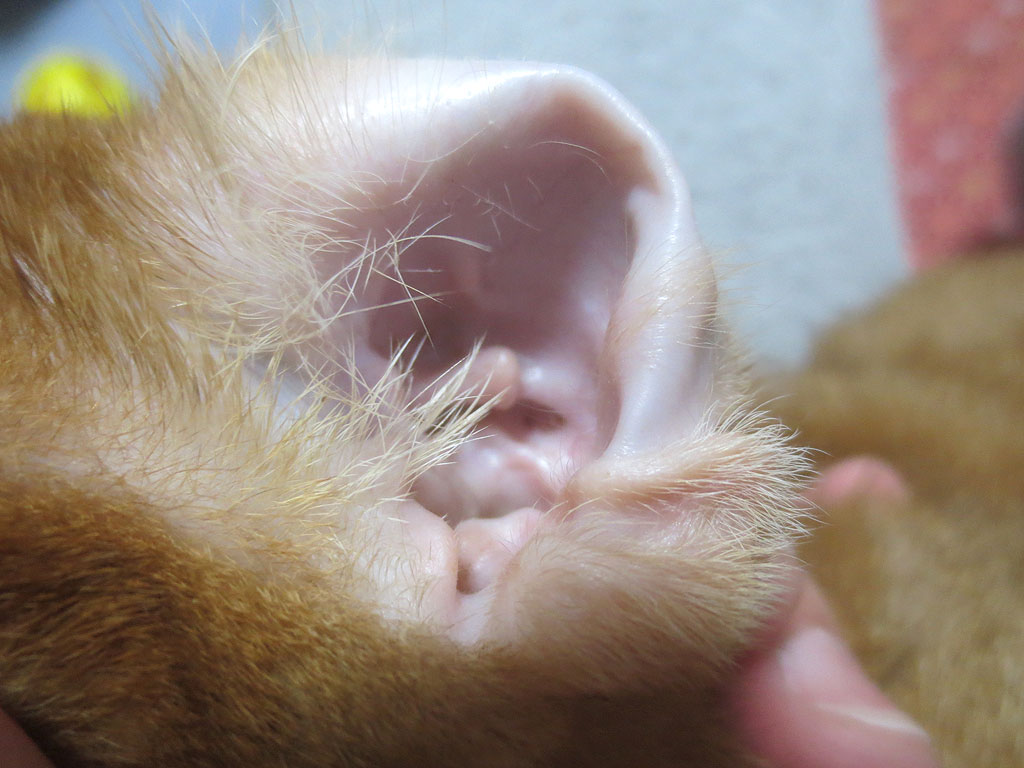 それで、アビのすけが私の所にやって来たついでに、たまに、アビのすけが、足で耳を掻いているのを見ていたので、ちょっと、アビのすけの耳の中を見てみたら…。