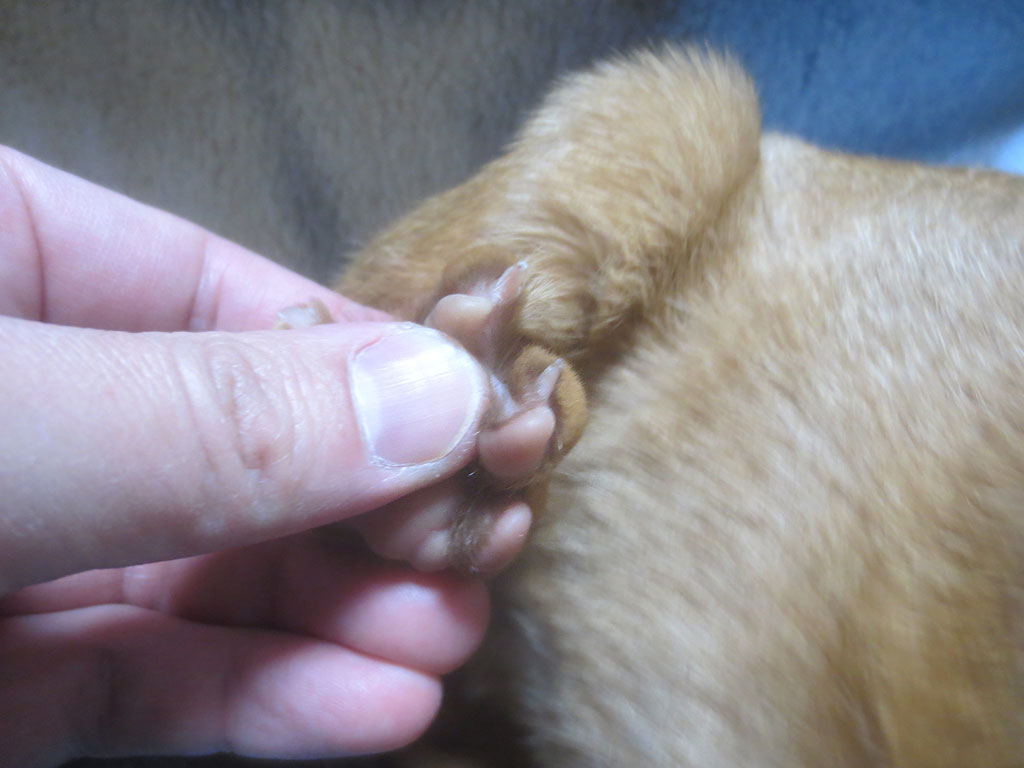 アビのすけの右足の肉球のチェック。そして、一応、足の肉球のチェックもしましょうね。