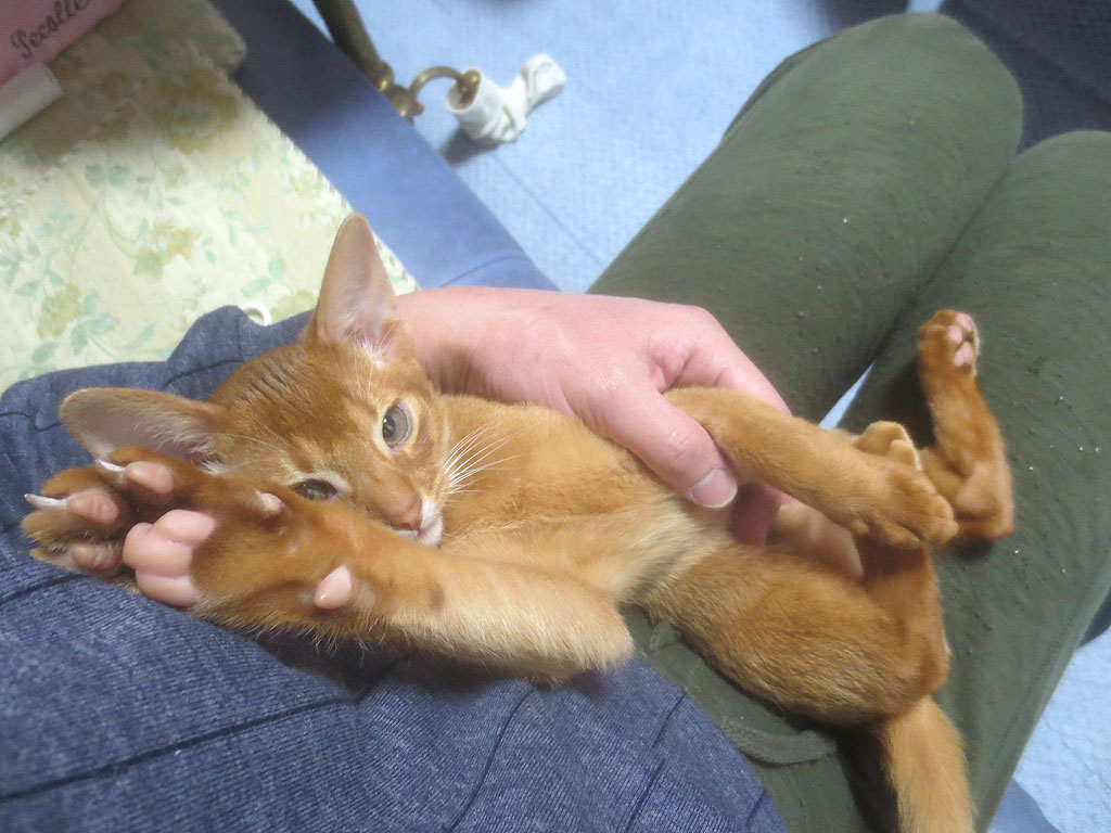 段々とお利口さんになって来ている、アビシニアンのアビのすけ君の爪切りの様子でした。