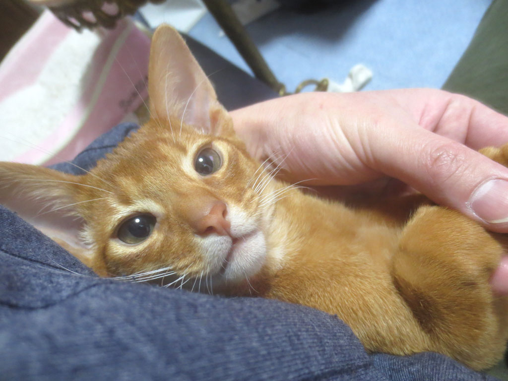 アビシニアンのアビのすけ、初めての耳掃除をしましたよ。