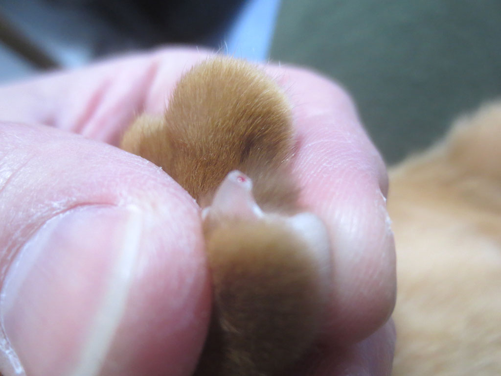 ロシ子にも、子猫の頃に1度だけ、深爪をして、こんな感じで、出血させてしまったんですけど、その時のロシ子と同じで、全く、痛がる様子もなく一安心…、アビのすけ君、ごめんよ…。