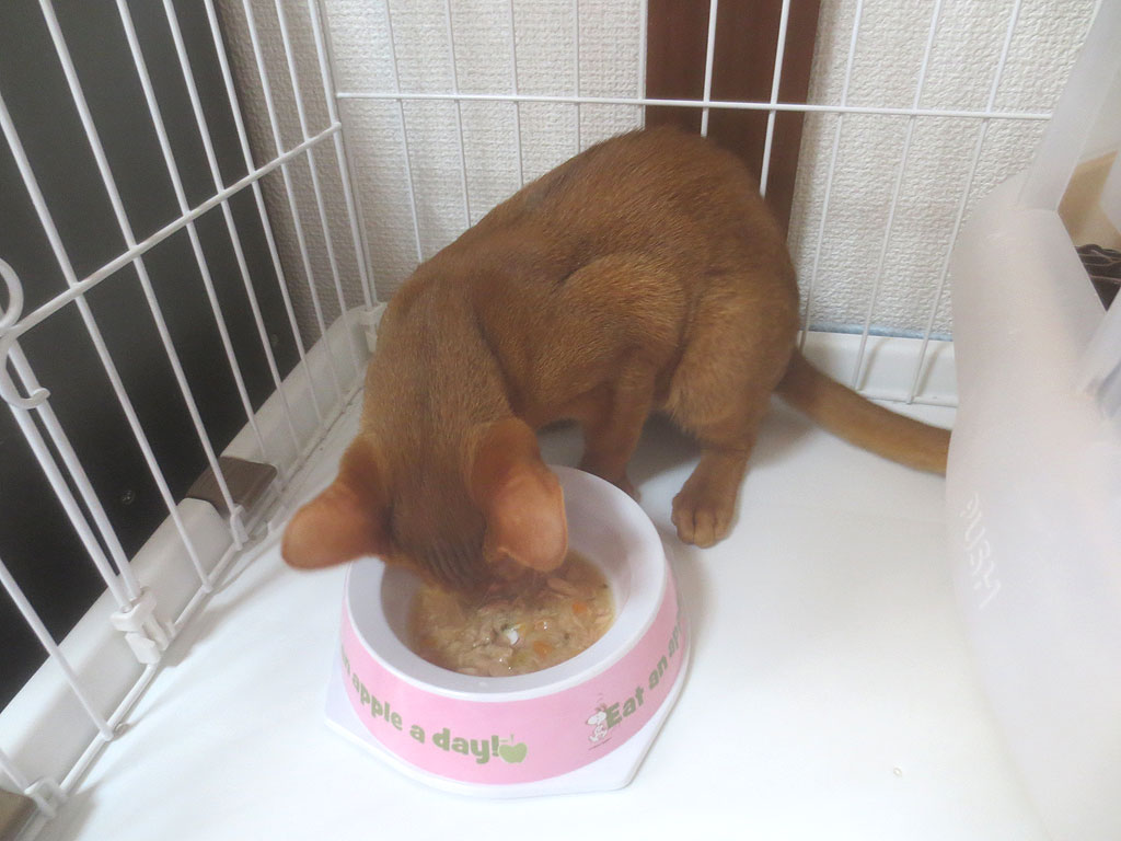 それでも、これだけガツガツ食べてくれると、私も気持ち良いのですが、吐かれる事だけが気になります。