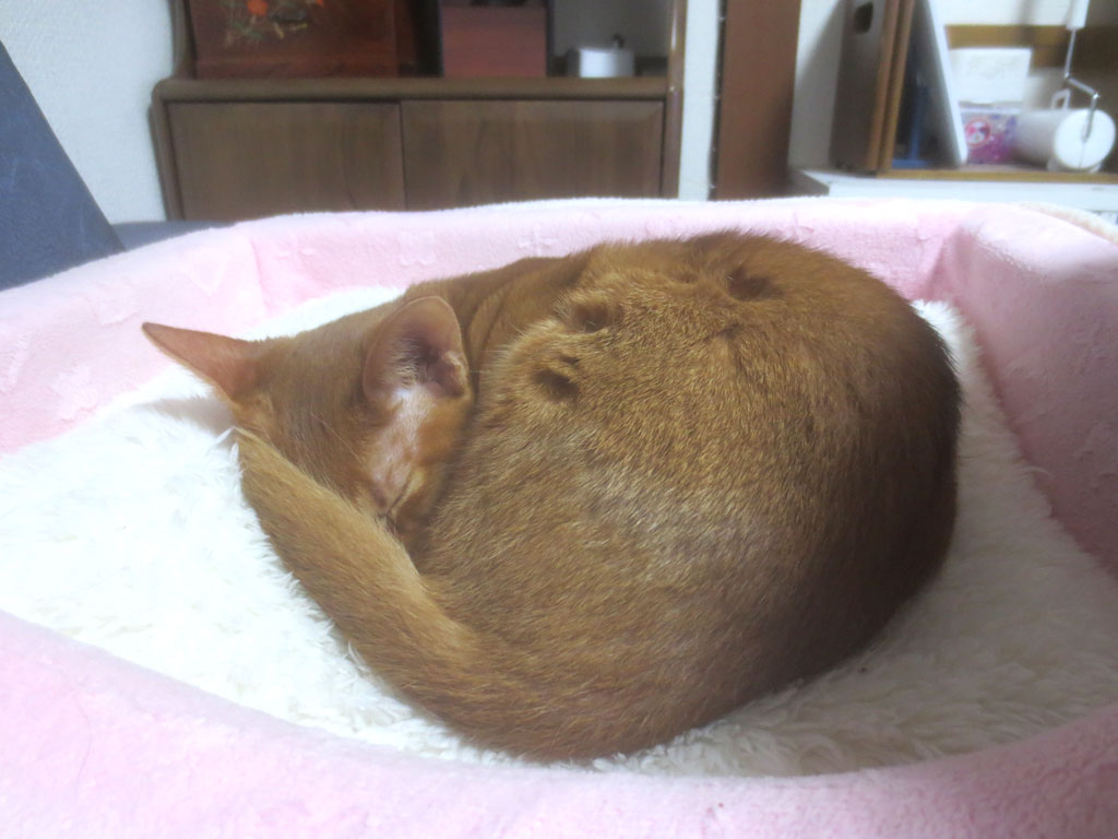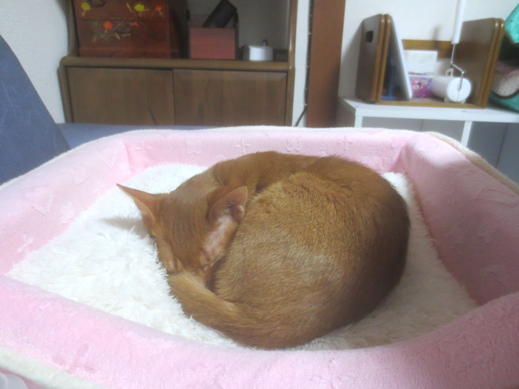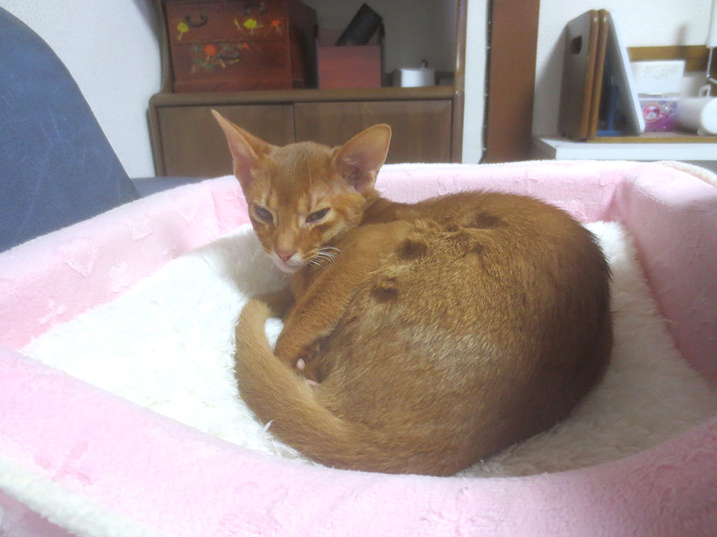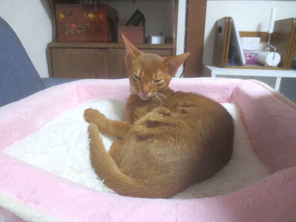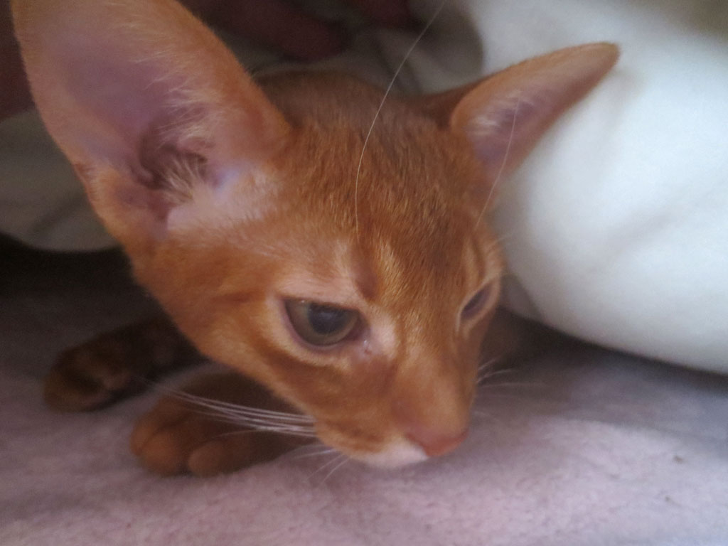 眠そうなアビシニアン。これは、ある晩のアビシニアンのアビのすけ…、眠そう…。