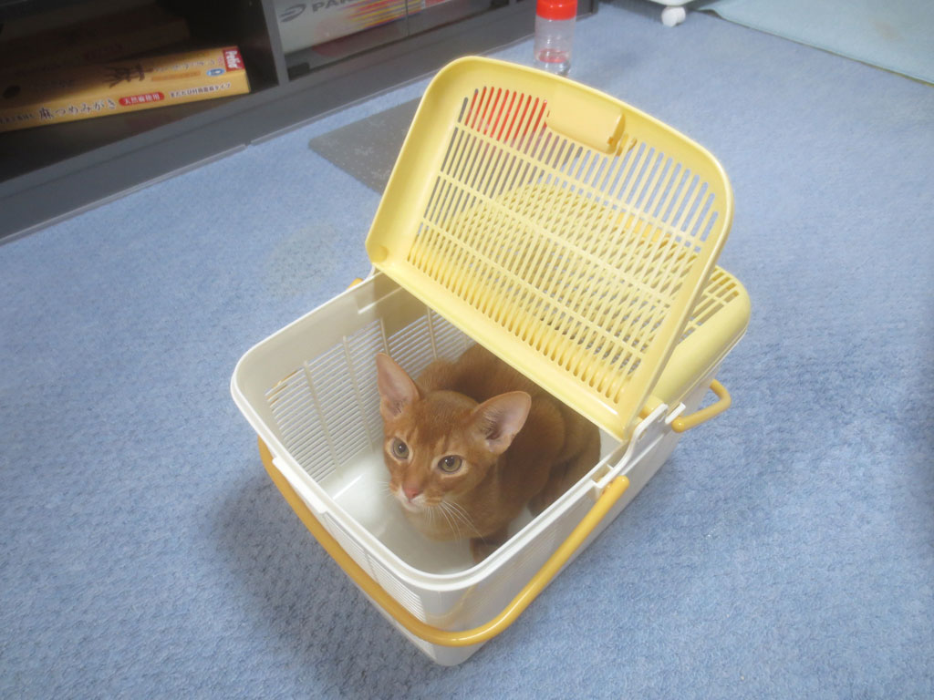 体重測定後のアビのすけ、やんちゃな顔付き…。