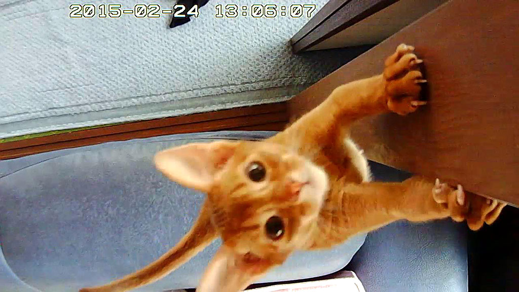 これは昨日、私がWebカメラで猫たちの様子をチェックしようと、ぐるぐるとWebカメラを動かしていたらのですが、好奇心旺盛なドラ息子のアビのすけが、ここにいましたよ。