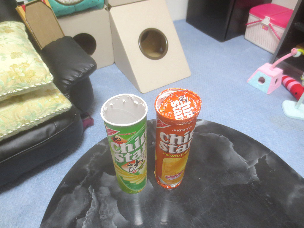 猫たちが噛み噛みするおもちゃとして、捨てずに転がしておいたお菓子の箱なのですが、オレンジの方には噛まれまくってる蓋が付いているのですが、緑の方に蓋は付いておらず、アビのすけはよく、この緑の方の蓋を転がして、噛んで、遊んでいた事を思い出して。