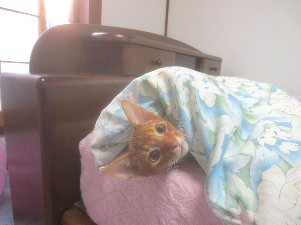 これまたアビのすけの寝起きのシーンですが、この写真は2週間前のアビのすけですね…、ロシ子の子猫の頃の寝起きの姿もかわいかったですが、アビのすけの寝起きもなかなかかわいいですね。