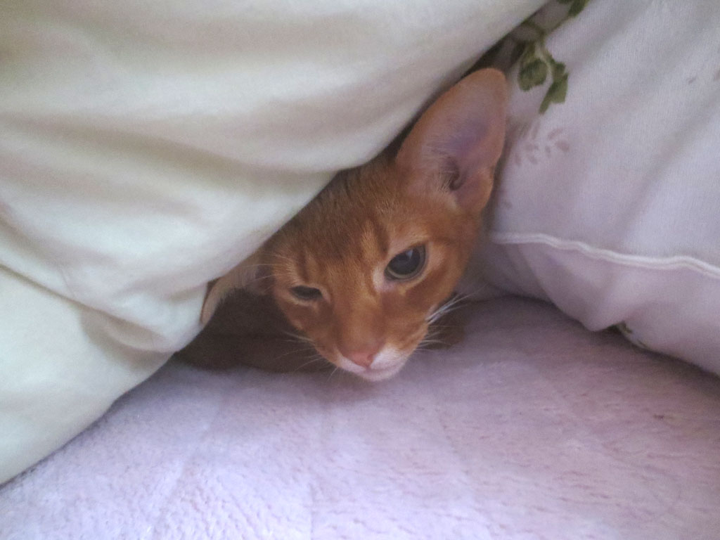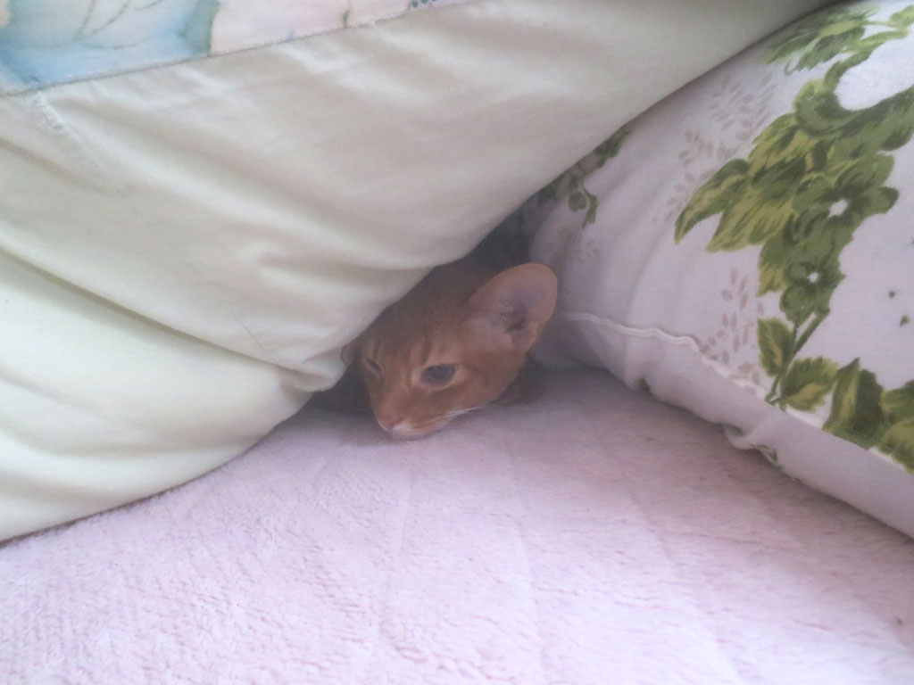 今日もそうなんですけど、アビシニアンって本当に茶目っ気たっぷりで、私が部屋にいる時は、常に私にまとわり付いて来るんです。