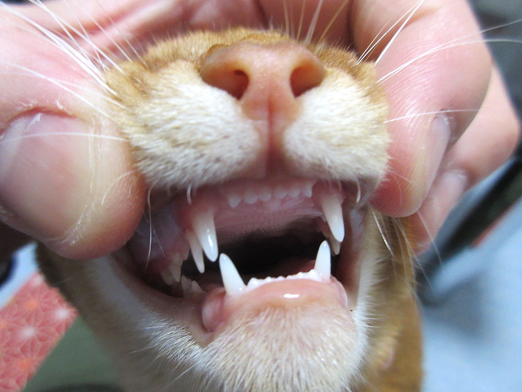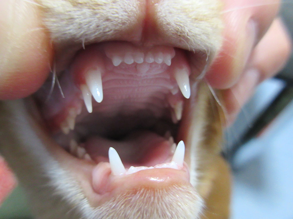 きちんと撮り直した写真がこちら…、もう片方のアビのすけの上の乳歯も抜けてしまっていたのです…、アビのすけの歯が抜けるラッシュ…。