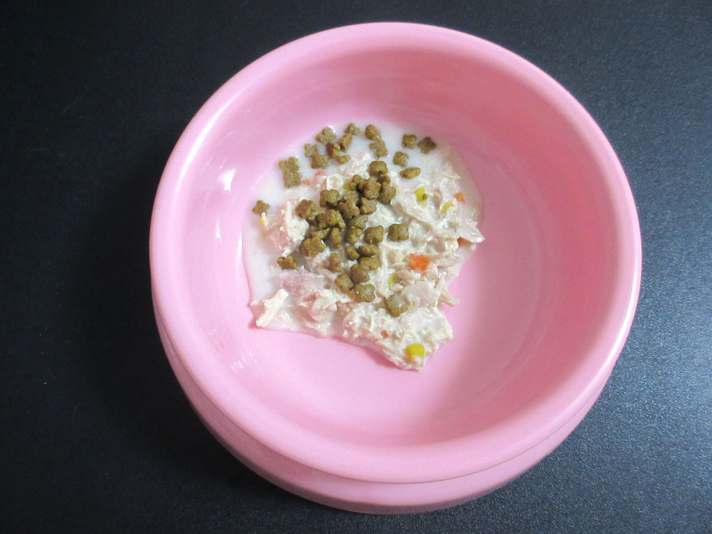 1/4のご飯を残した昨日のアビのすけ。何でそんな事を思ってしまったかと言うと、この写真は昨日、アビのすけが残してしまった朝ご飯の写真で、気になったので写真に撮っておいたのですが、食欲旺盛なバカ食いのアビのすけが、朝ご飯を1/4(約10g)も残してしまっていたのです。