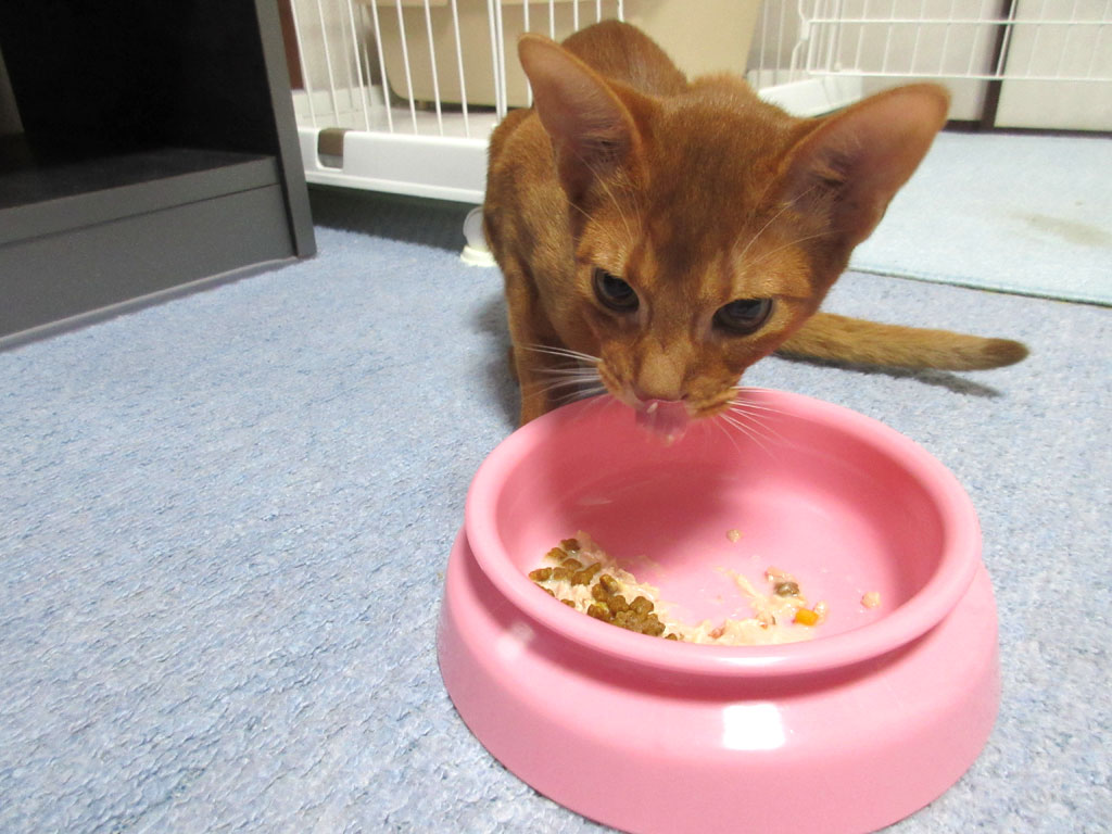 食欲が凄いアビのすけ。パウチにカリカリを5gだけ合わせた、60gオーバーの晩ご飯を、いとも簡単に完食してしまうアビのすけ…、恐ろしい食欲、恐ろしい男なのです…。