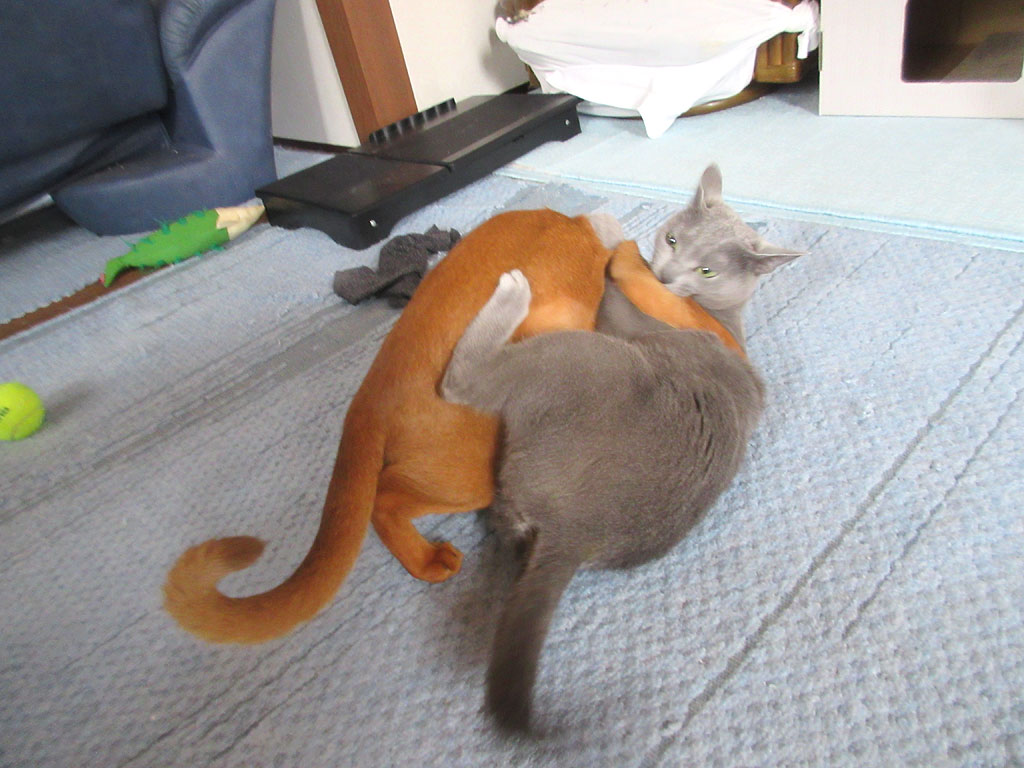 ロシ子とアビのすけの取っ組み合い。約1ヵ月ぶりの、ロシ子アビのすけの取っ組み合い…、なんかロシ子もとっても楽しそうにアビのすけと取っ組み合いをしてる様な感じで…。