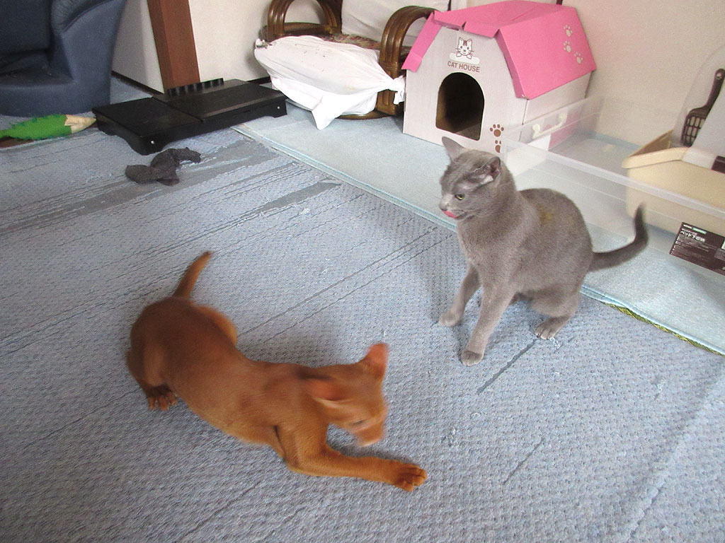 ハッスルするアビのすけ。ロシ子お姉に遊んでもらえて、アビのすけもとっても嬉しそうで、ハッスル、ハッスル…。