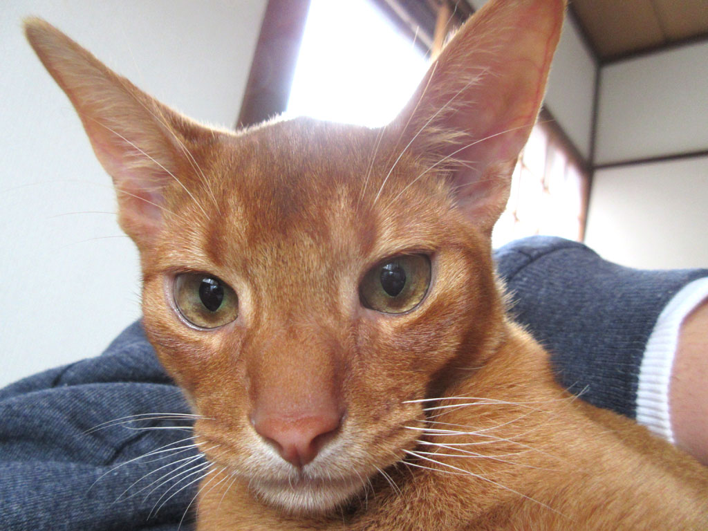 私に物申す感じのアビのすけ。アビのすけもかなり体が大きくなったので、以前に比べるとかなり抱き付きやすい体になって来て、なので今日、少しだけアビのすけに抱き付いてやって、逃がしてあげなかったのですが、その時のアビのすけのこの顔、私に何か物申す様な顔付き…。