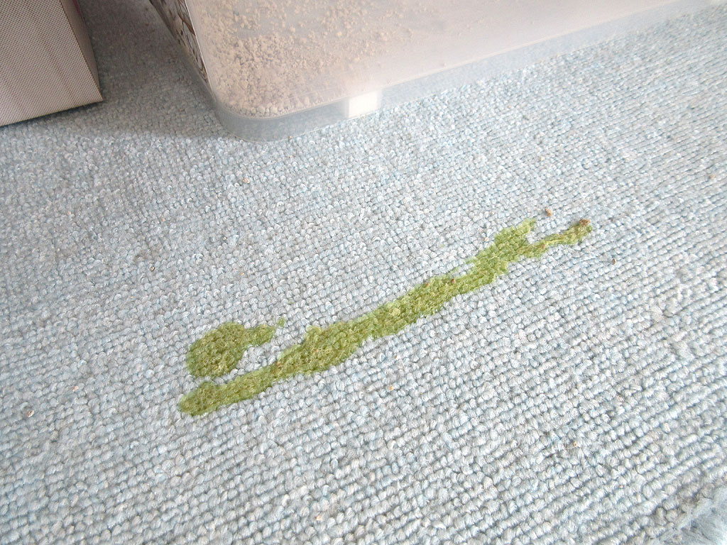 2カ所目の吐いた跡。こっちは2カ所目のアビのすけの吐いた物…、あぶくを吐いたみたいになっていますが、吐く物がなくって、でも吐きたくて吐いたって感じ…。