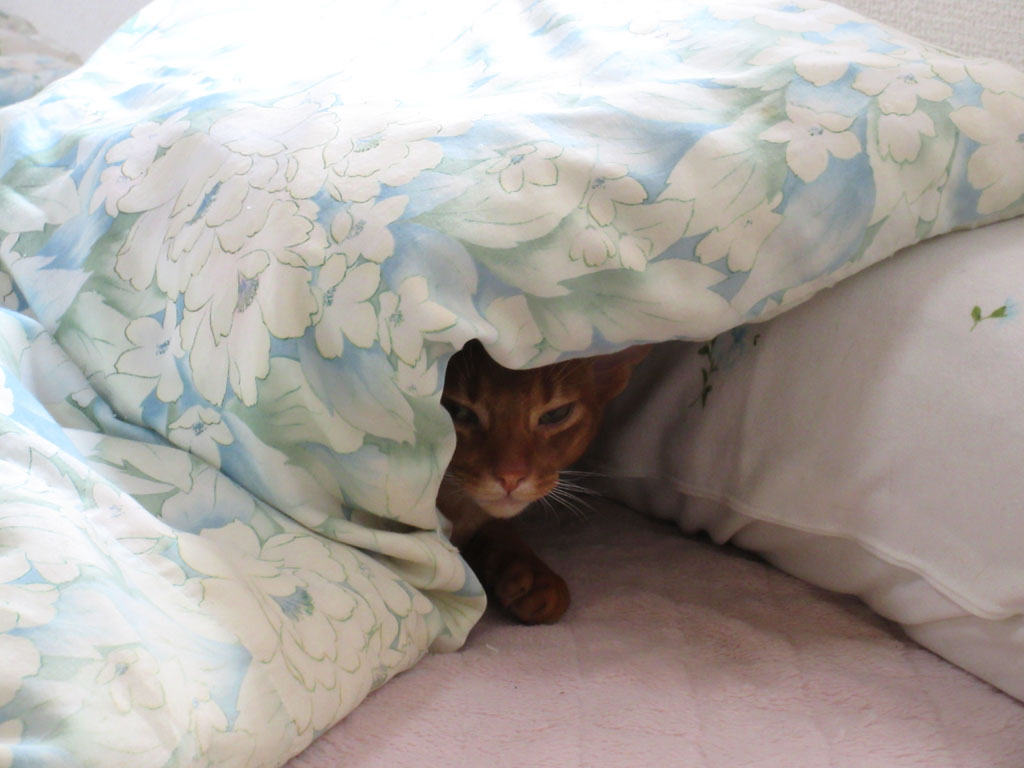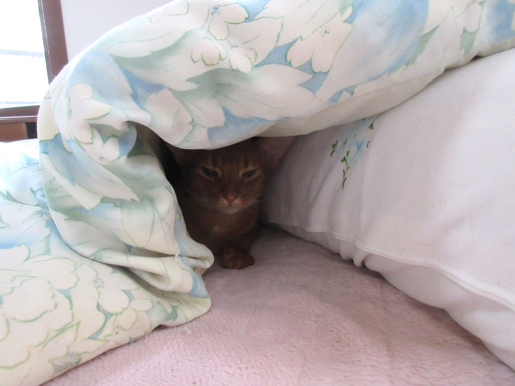 そしてこれは今朝のアビのすけの様子…、昨日の夜中も、アビのすけは私の布団に入って来ては、ゴロゴロと転がりまくったもので、またまた私は寝不足気味…。