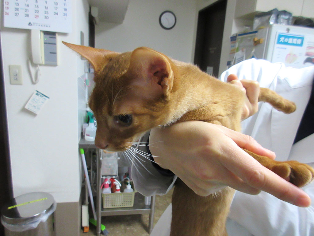今日、我が家の暴れん坊将軍、アビシニアンのアビのすけ君の去勢手術に行って来まして、無事、成功しましたよ…!