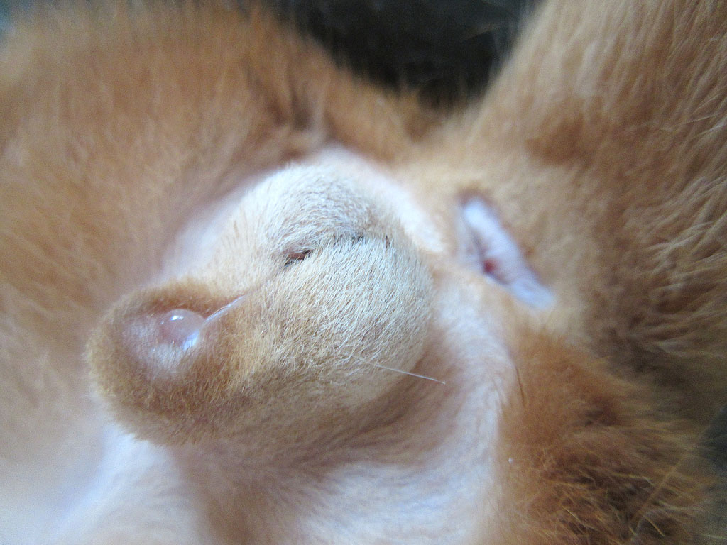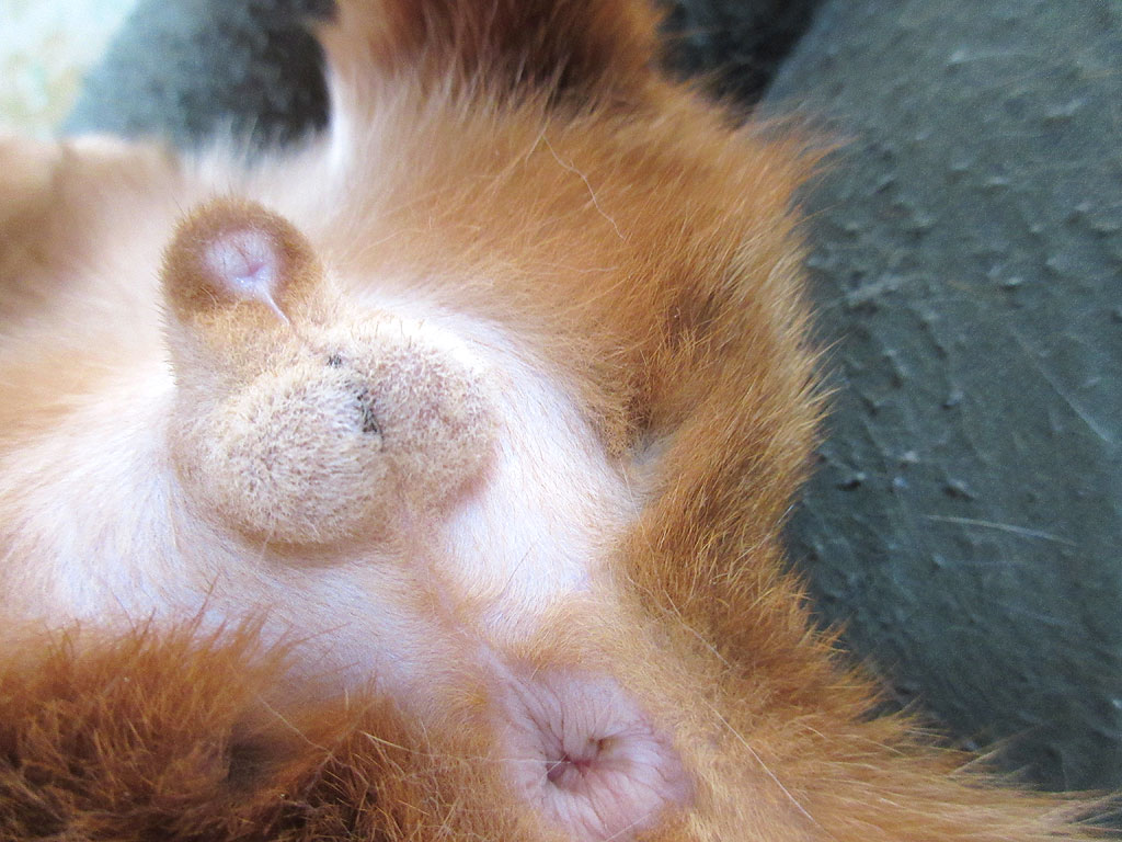 そしてこれは昨日の写真…、去勢手術後、6日目のアビのすけの患部の状況…。