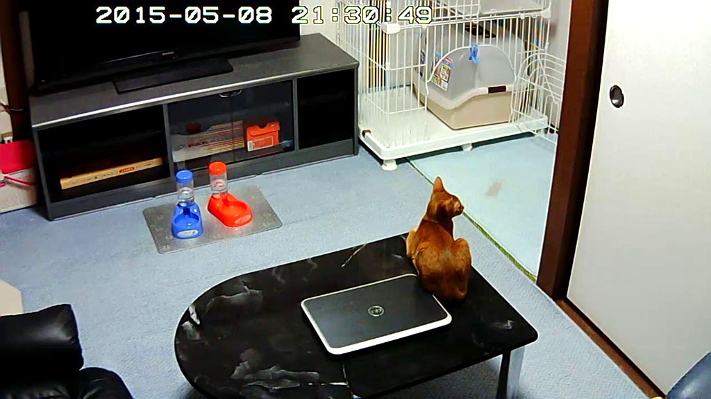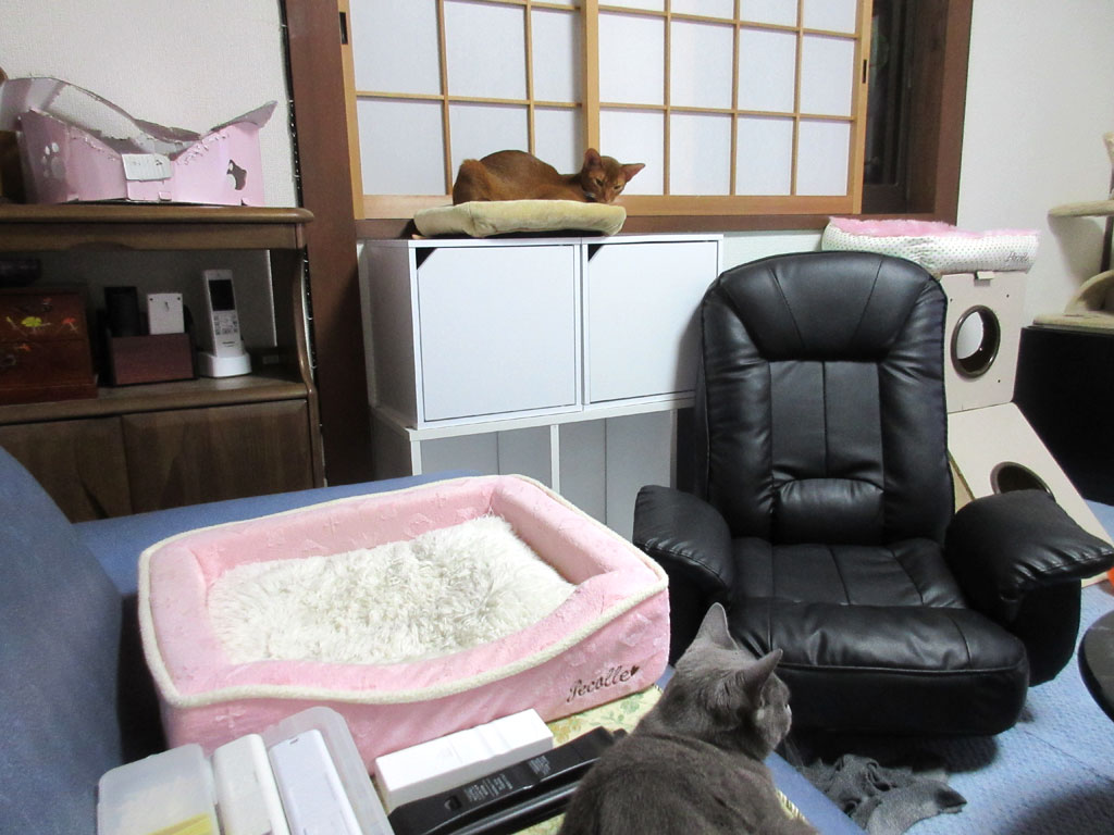 晩9時30分過ぎで、間もなく猫たちの晩ご飯の時間なのですが、最近は、ロシ子よりもアビのすけの方が先に、ここでご飯を待ってる事が多いのです。