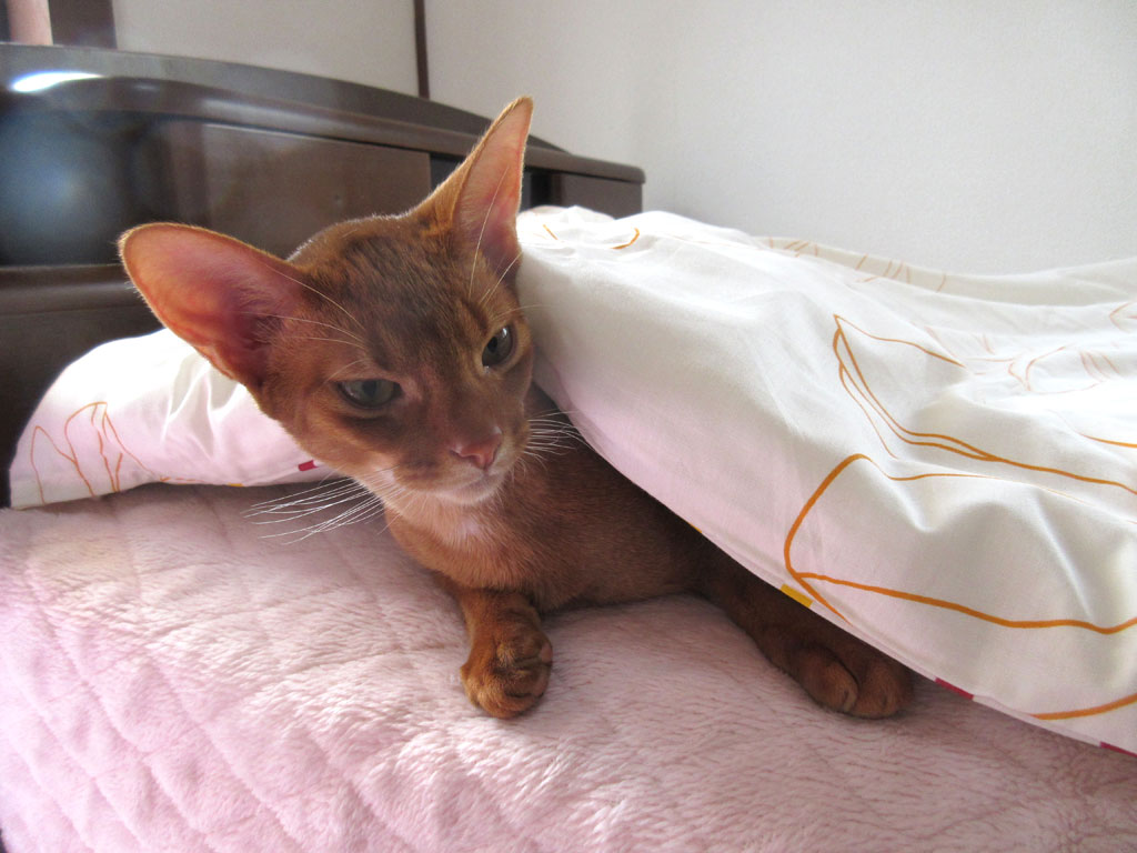 最近は、かなり暑くなって来ているのですが、相変わらずアビのすけは、毎朝、必ず、私のベットにやって来て、布団に潜り込んで来てくれるのです。