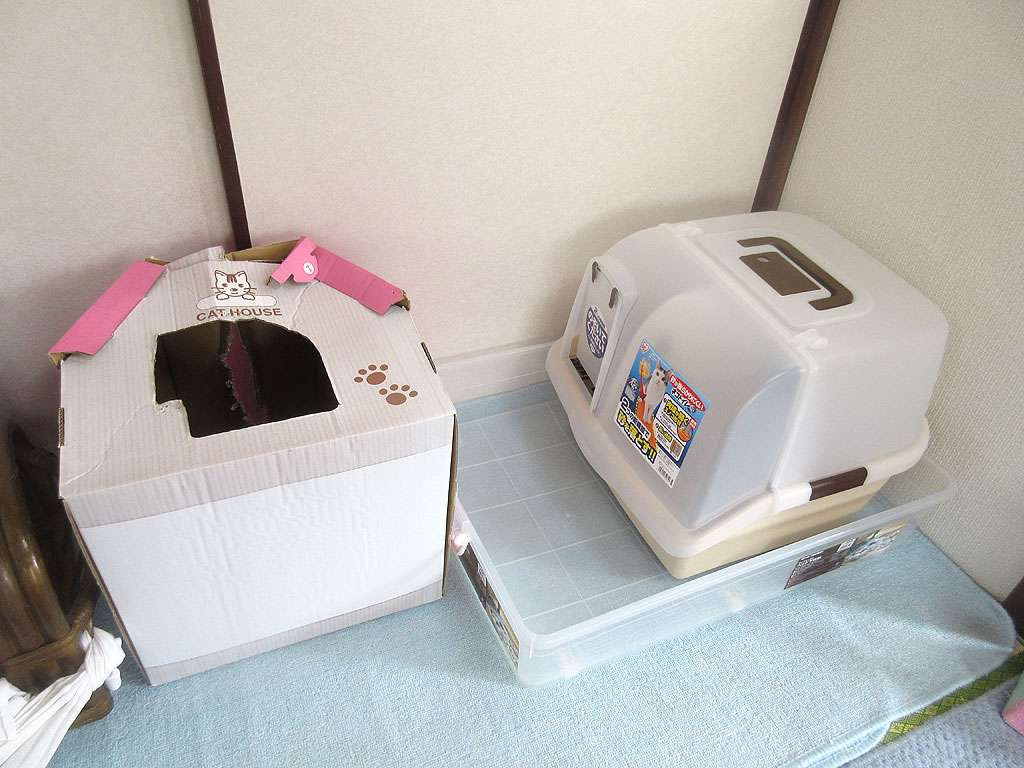 ダンボールの小さい切れ端位なら、食べても問題なさそうだったので、このダンボールハウスも放置しているのですが、以前の様に、誤飲の手術なんて事になったら大変なので、やっぱり、このダンボールハウスも処分しなきゃダメかな…。