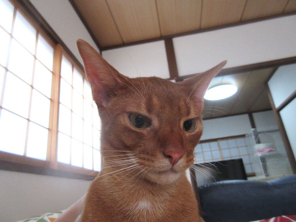 ちょっと眠そうだけど、風格漂う、なかなか良い顔をした、アビシニアンのアビのすけ君ですね。